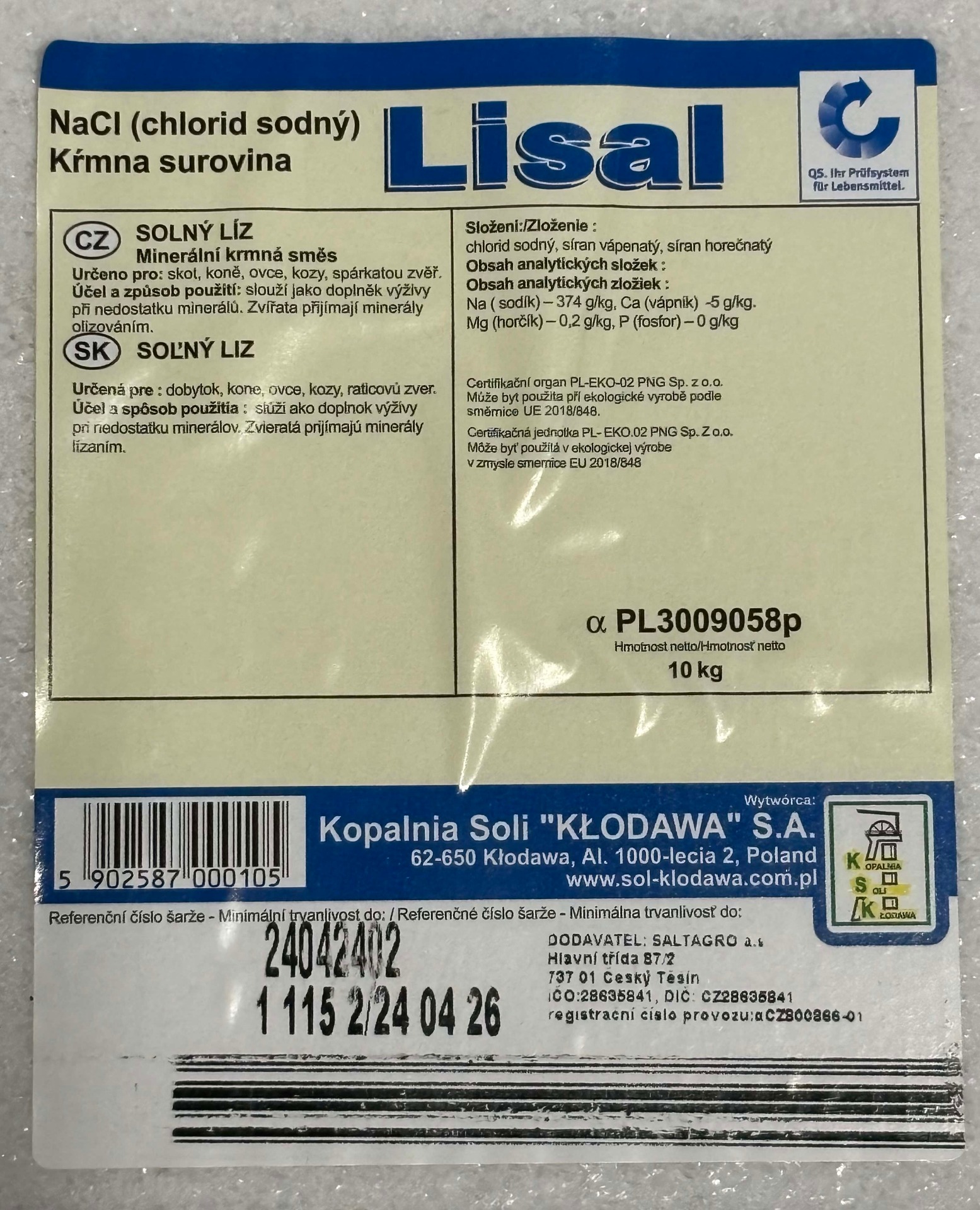 Složení: Na (sodík) 37,4 %
